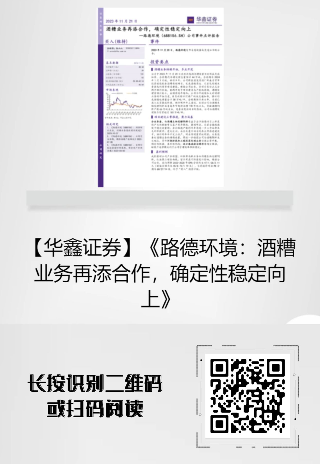2023年11月20日,路德環(huán)境自愿披露收到酒鬼酒股份有限公司酒糟處置項(xiàng)目《成交通知書》的公告,華鑫證券發(fā)布點(diǎn)評報(bào)告,對該事件進(jìn)行點(diǎn)評分析,并對公司未來發(fā)展前景給予肯定。